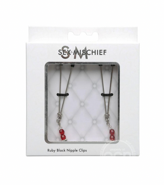 Sex & Mischief Ruby Black Adjustable Nipple Clips with Beads
