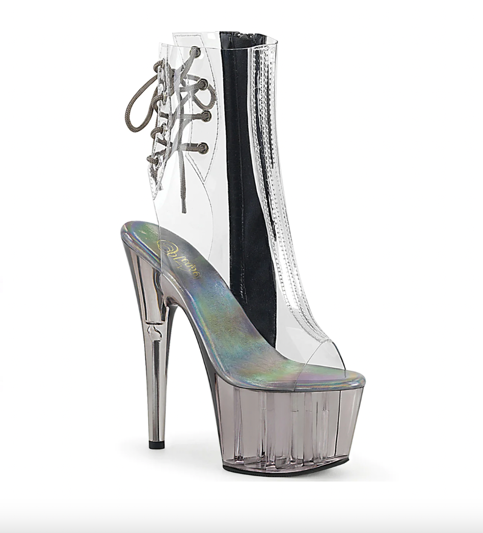 7" (178mm) Heel, 2 3/4" (70mm) Tinted Platform Open Toe/Heel Lace-Up Back Ankle Boot, Inside Zip Closure