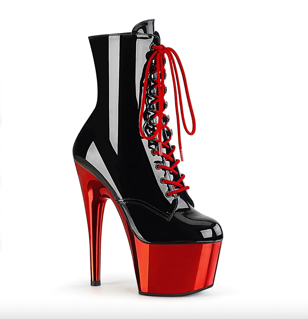 Elevate your shoe collection with the Adore-1020 - a pair of ankle boots that exude sexiness and sophistication. With a towering 7" stiletto heel and 2 3/4" platform, these lace-up boots are designed to make you feel confident and fierce. The full inner side zip closure allows for easy on and off, while the solid construction provides balance and stability. Whether you're a dancer, a pole fitness enthusiast or simply looking for a statement-making pair of boots, the Adore-1020 will meet all of your needs in style.