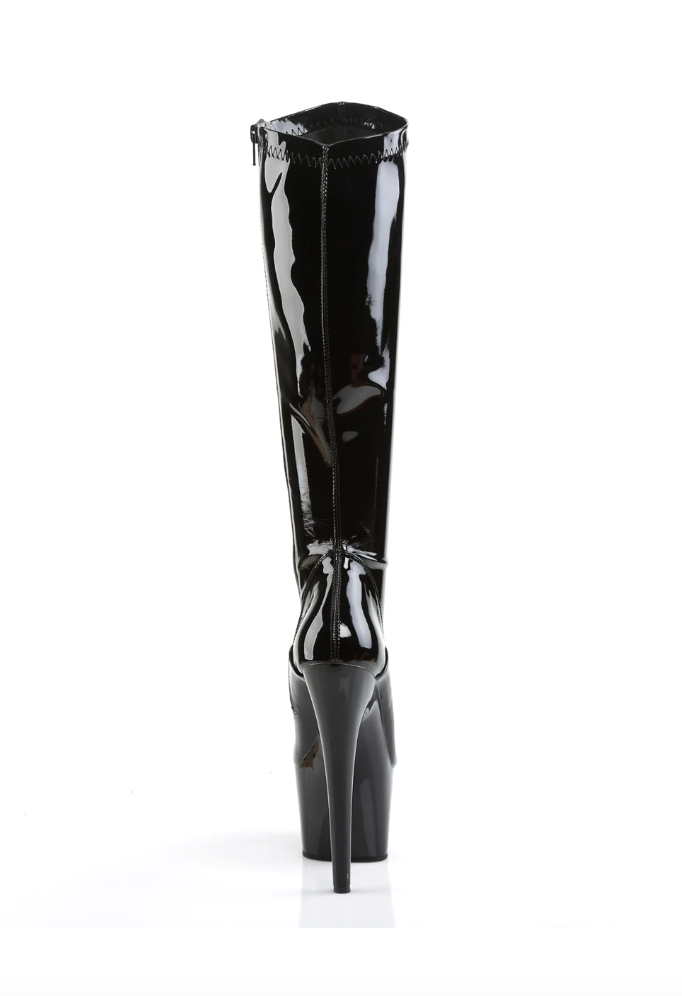 7" (17.8cm) Stiletto Heel, 2 3/4" (7cm) Platform Stretch Knee Boot, Side Zip Closure