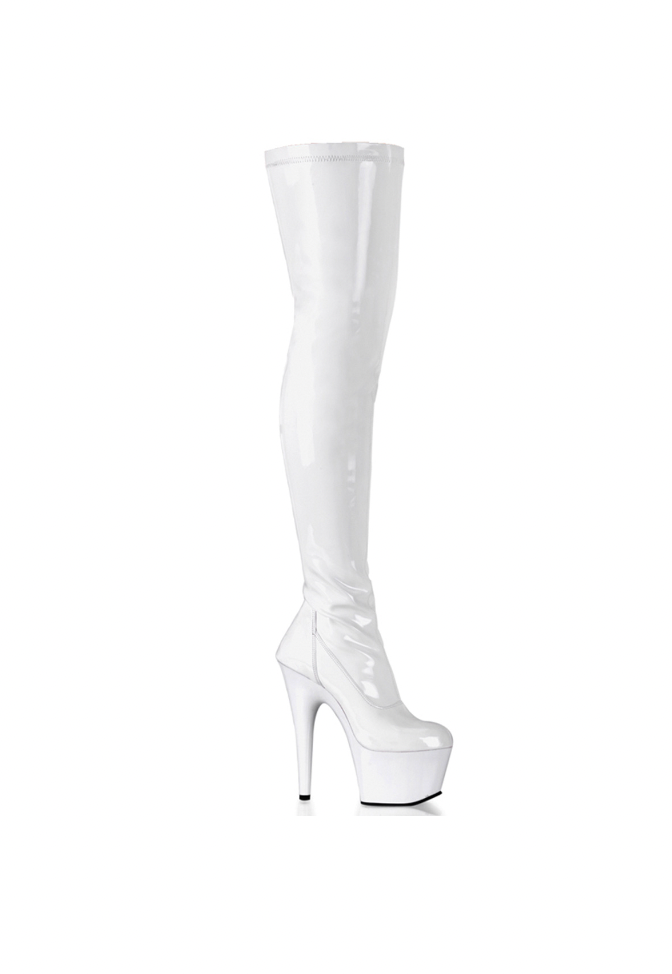 Step into ultimate seduction with the Adore-3000 Thigh Boot. The 7-inch stiletto heel and 2 3/4-inch platform create a breathtaking silhouette that will leave everyone in awe. Made with a plain stretch material and featuring a full inner side zipper, these boots offer both style and convenience. Dare to dominate the room with these thigh-highs that embrace sensuality and power. Elevate your confidence and make a statement with the Adore-3000.