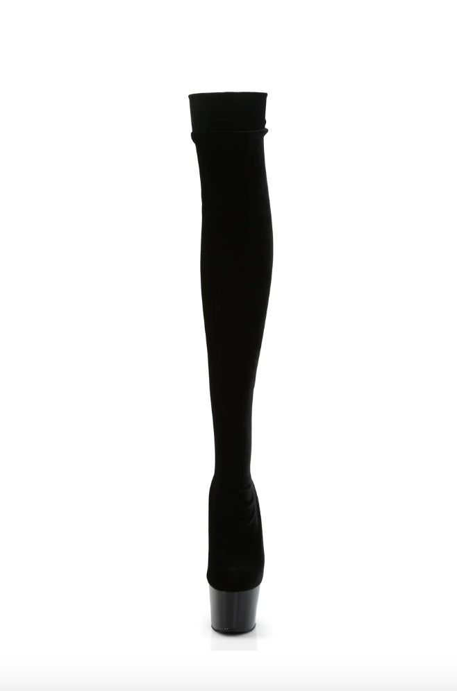 7" (17.8cm) Stiletto Heel, 2 3/4" (7cm) Platform Plain Stretch Platform Velvet Thigh Boot, No Zipper