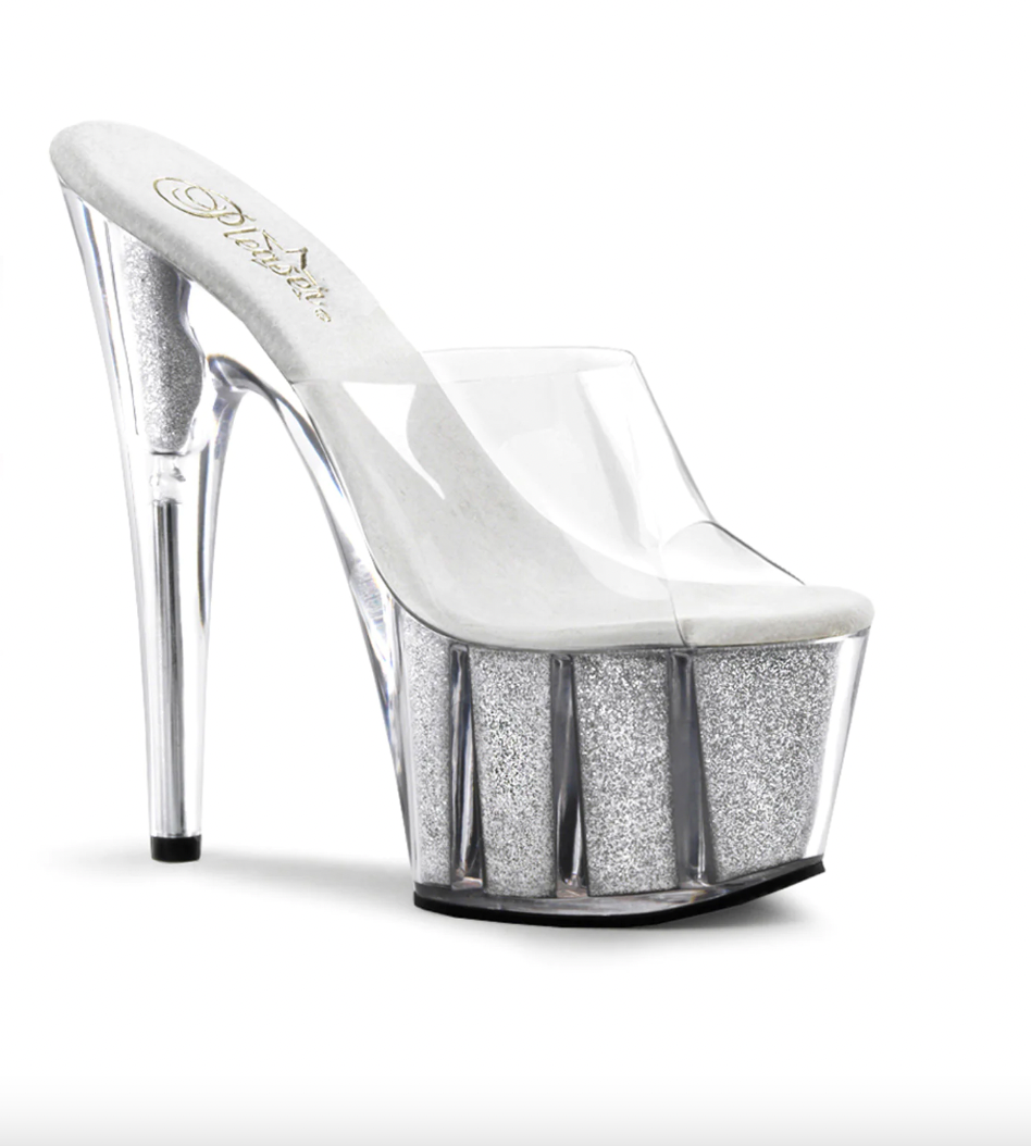 7" (17.8cm) Stiletto Heel, 2 3/4" (7cm) Platform Slide, Glitter-filled Platform