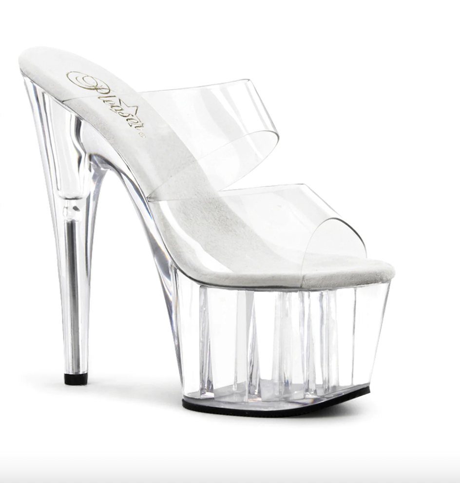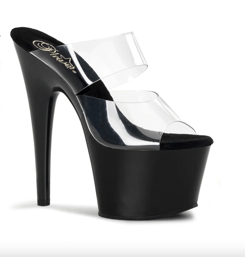 Embrace your inner confidence with the Adore-702 Slides. These stunning slides feature a 7-inch stiletto heel and a 2 3/4-inch platform, giving you that extra boost of height and allure. The two-band clear straps add a touch of elegance and transparency, making these slides perfect for both casual and special occasions. Slip into the Adore-702 and instantly elevate your style game.
