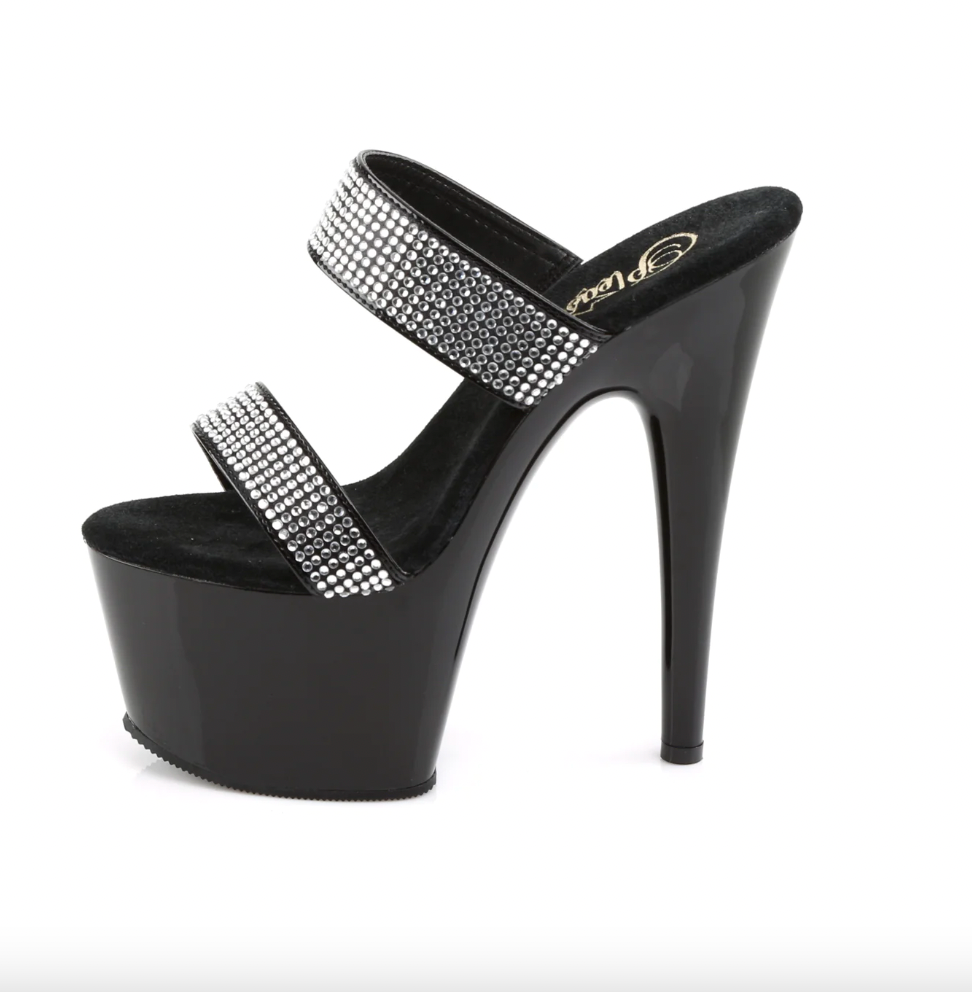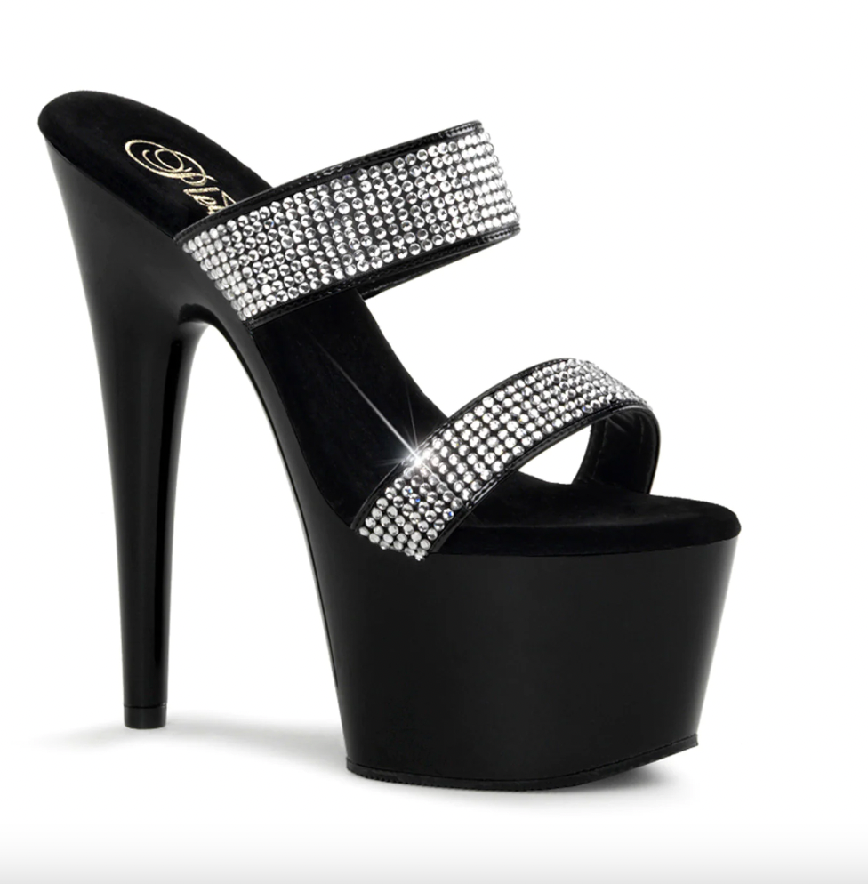 7" Stiletto Heel Two-Band Platform Slide with Rhinestones