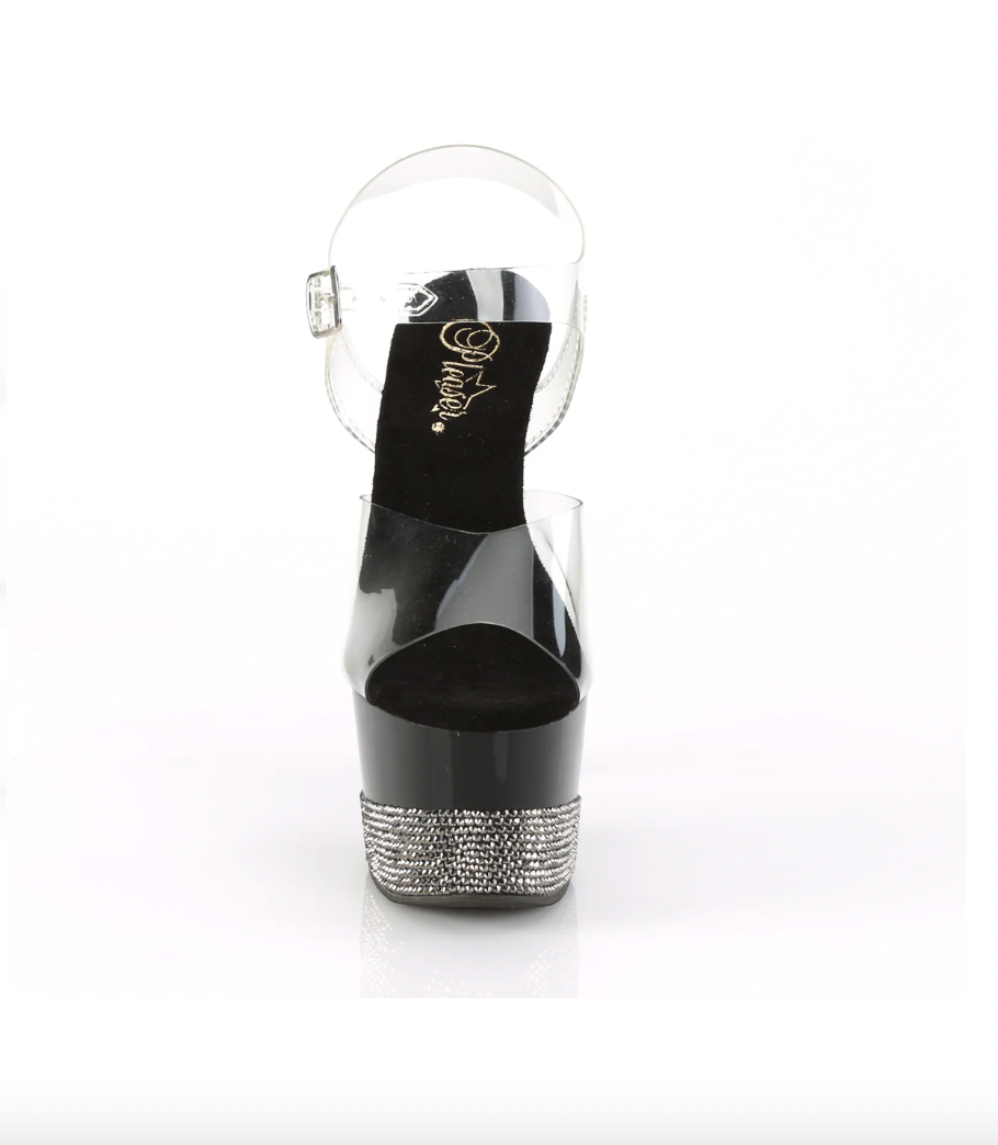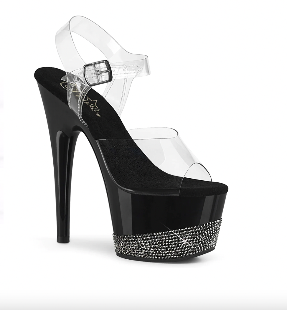 7" (178mm) Heel, 2 3/4" (70mm) Platform Ankle Strap Sandal Featuring Rhinestone Encrusted Platform