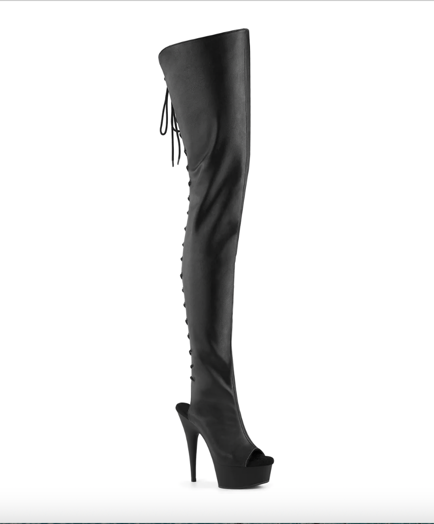 6" (152mm) Heel, 1 3/4" (45mm) Platform Open Toe/Heel Lace Up Back Crotch Boot, Full Inner Side Zip Closure