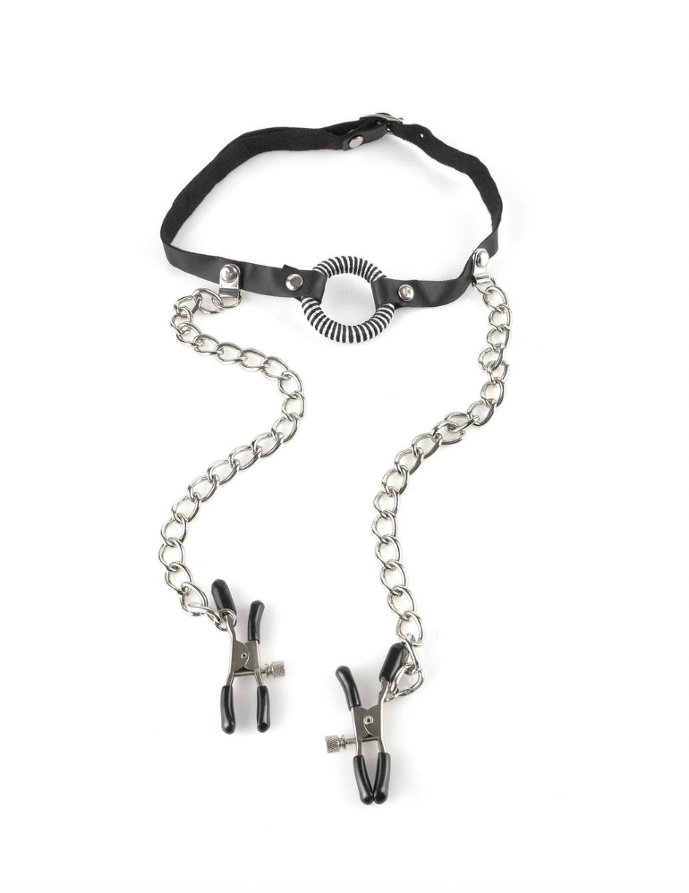 Fetish Fantasy O-Ring Gag with Nipple Clamps