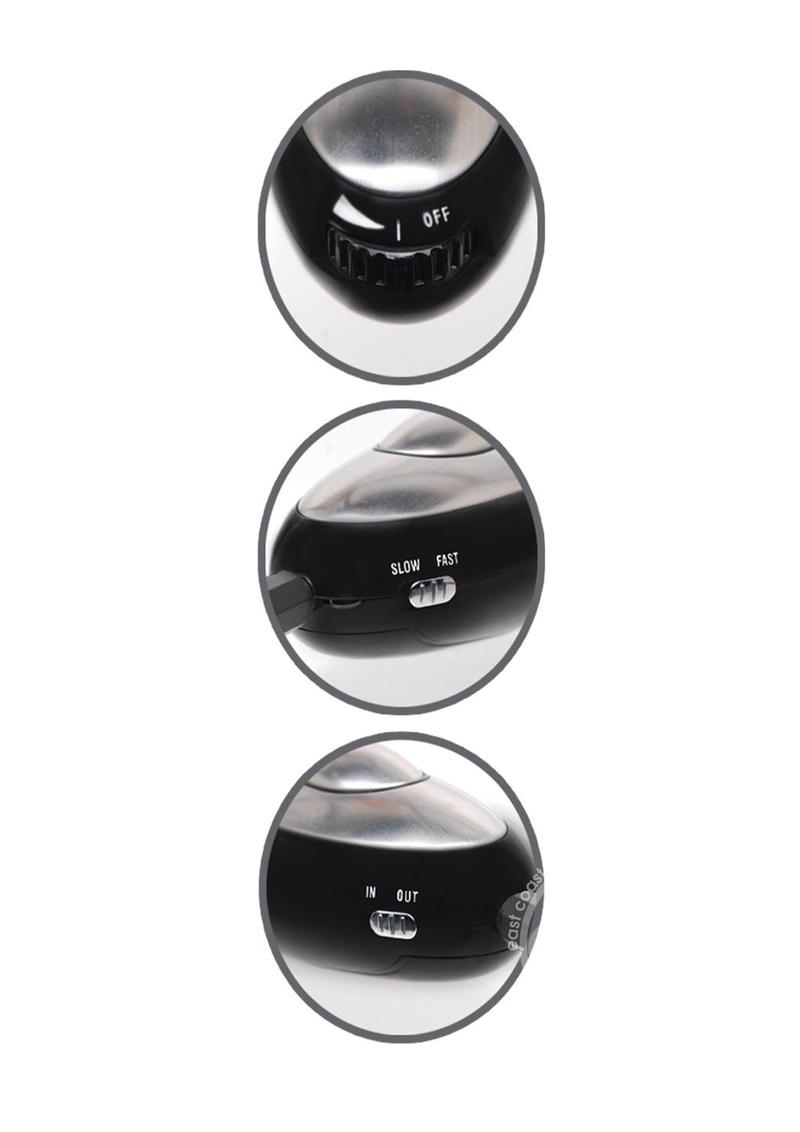 The Luv Touch compact control unit sends electrical impulses to the clamps and can be used alone as a hand massager or together with the clamps. To use the control as a hand massager, switch to IN mode. The oval center piece delivers the shock once your palm touches any other part of the metal. To use the power unit with the clamps, switch it to "OUT" mode and connect the clamps plug-in jack.