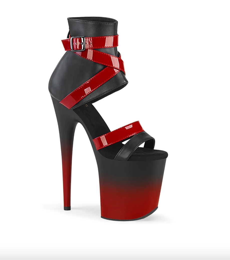 8" (200mm) Heel, 4" (100mm) Platform Two Tone Bootie Sandal w/Criss Cross Ankle Strap, Back Zip Closure