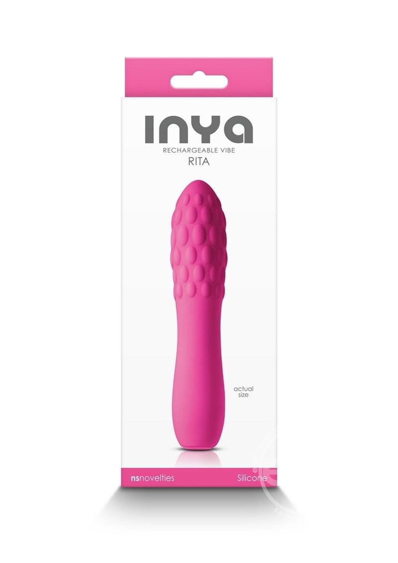 Trendy and compact, Rita by INYA is discreet, rechargeable, and travel friendly. Featuring a stimulating textured design made of platinum grade silicone, Rita has 10 exhilarating settings. Water resistant and suitable with all lubricants.