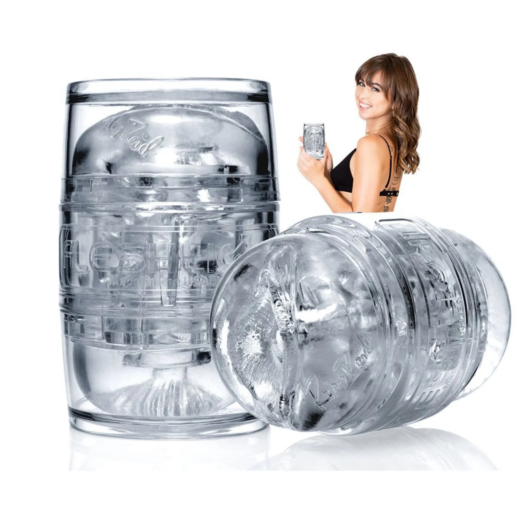 With the clear and compact Riley Reid Quickshot by Fleshlight, you'll be able to watch every satisfying moment of self-pleasure. Equipped with both Riley's vagina and butt, the Quickshot gives you two ways to enjoy your time with this hunk. Or invite a partner over for some three-way oral action with Riley. With so many ways to enjoy Riley Reid, you may never leave the house again!Â