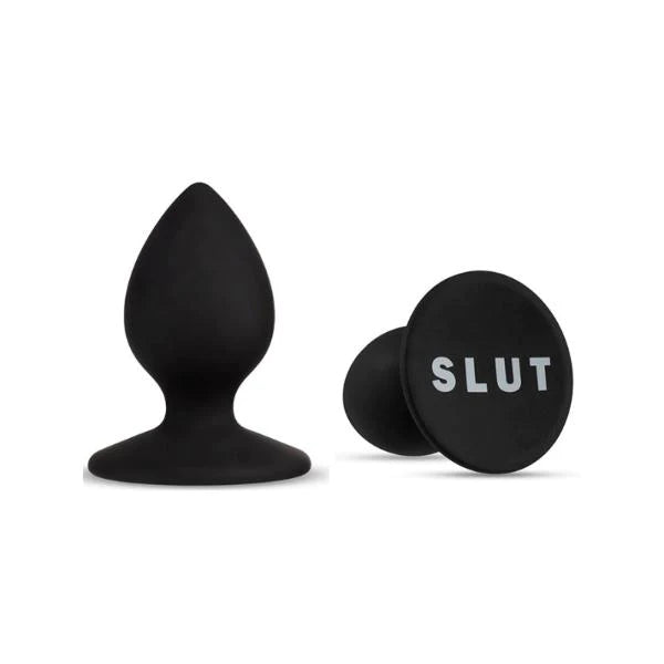 Show them what you really are... The Temptasia Slut Plug is an expressive anal toy made from satin-smooth silicone. Featuring a tapered tip for easy insertion, this Temptasia plug is ideal for new to intermediate-level anal players. The round base sports the word "SLUT" painted in platinum-cured silicone. It's body safe and simple to clean!Â