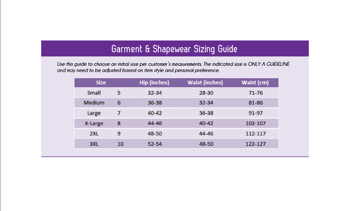TRANSFORM® Shapewear & Garment Sizing Guide